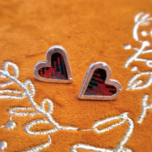 HEART SILVER + TARTAN STUD EARRINGS