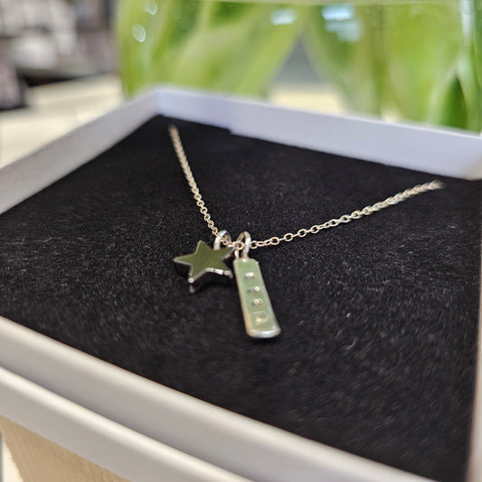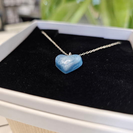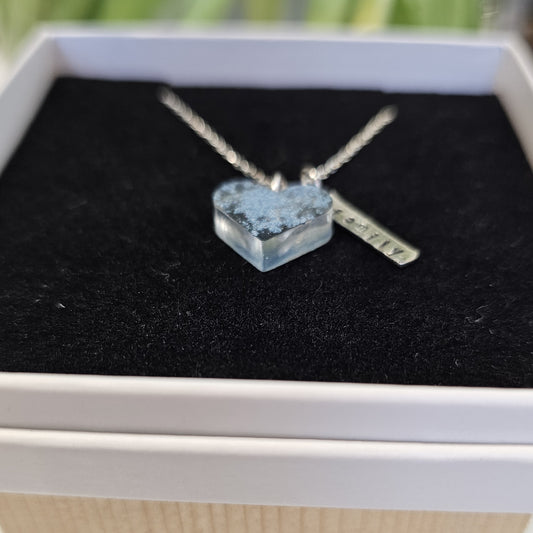 BLUE SPECKLE FLAT HEART TAG NECKLACE