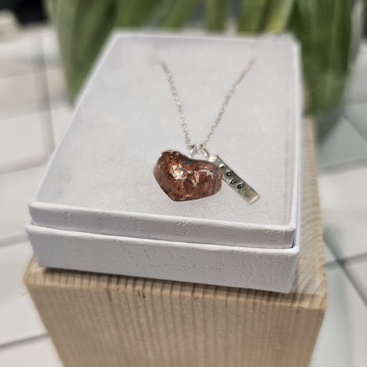 BRONZE SPECKLE PUFF HEART TAG NECKLACE
