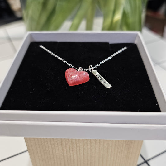 CANDY PINK PUFF RESIN HEART TAG NECKLACE