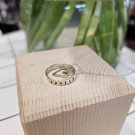 AQUA BLUE PUFF HEART & 'FAMILY' TAG