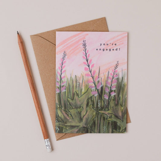 PINK + BLUE FLOWERS ENGAGEMENT CARD