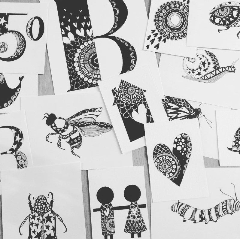 Her love for pattern and monochrome resonates in her beautifully curated products and her designs can be seen on an extensive collection of greetings cards and illustrative prints.