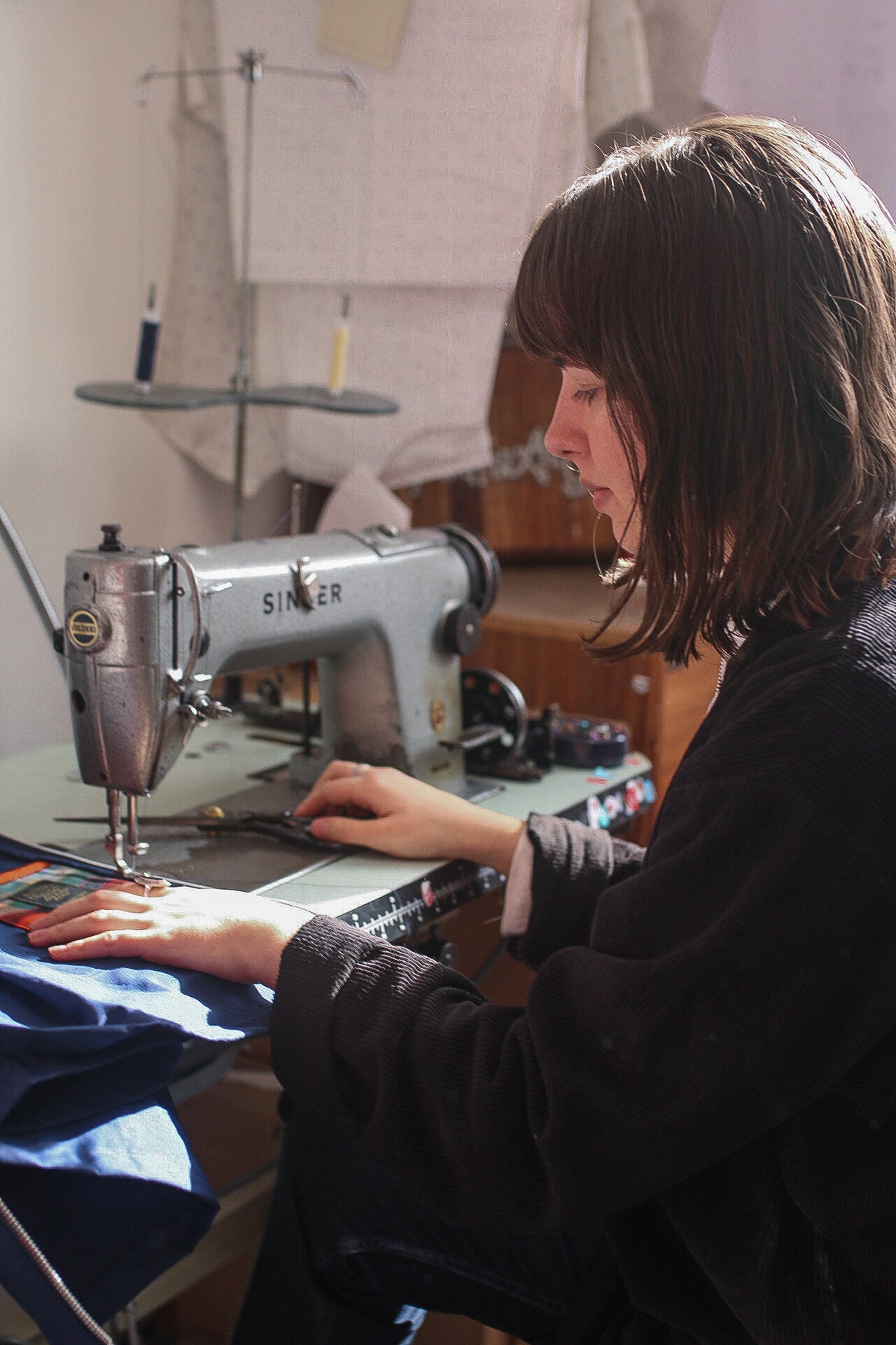 Every garment is designed and handmade in her studio, and wherever possible, fabrics are sourced locally to support British manufacturing, like their inimitable waxed cotton from Halley Stevensons, an over 150 year old fabric mill in the heart of Dundee, Scotland.