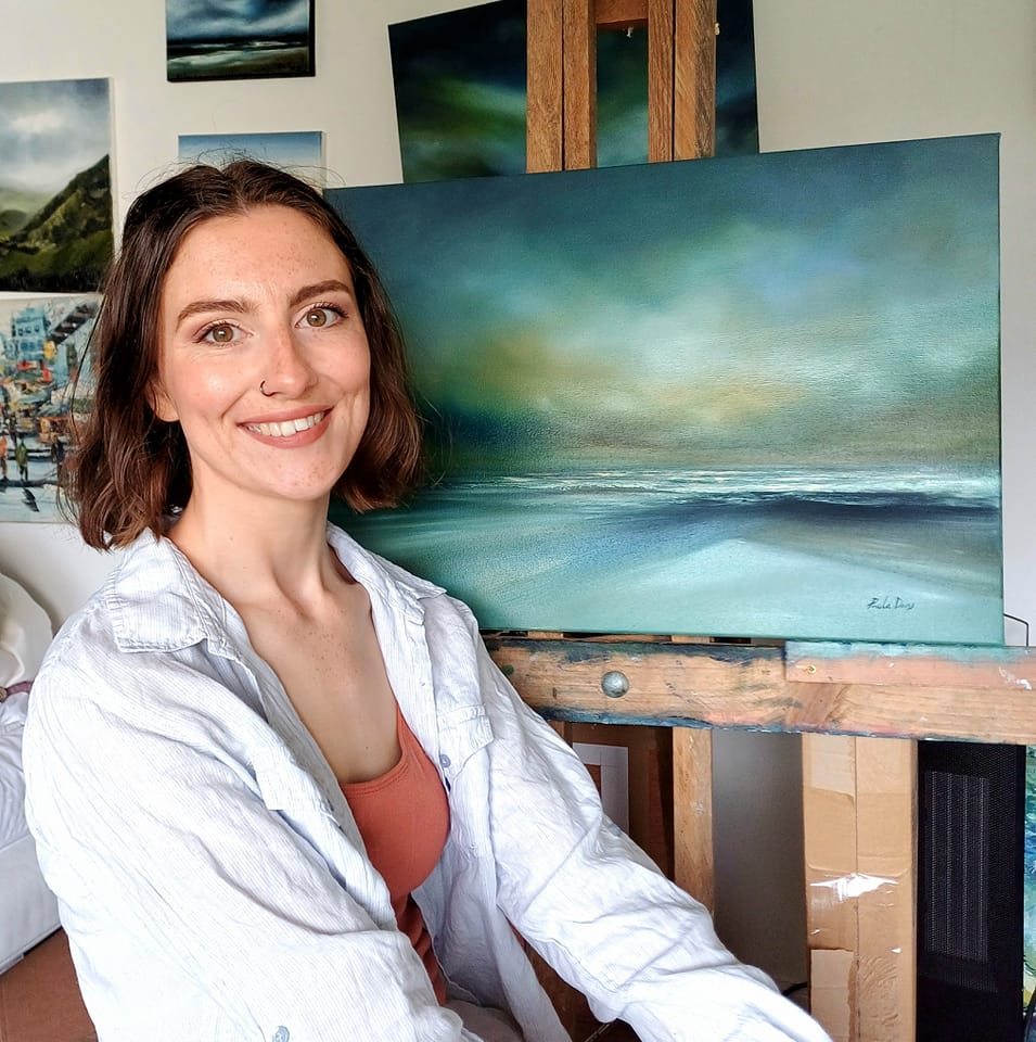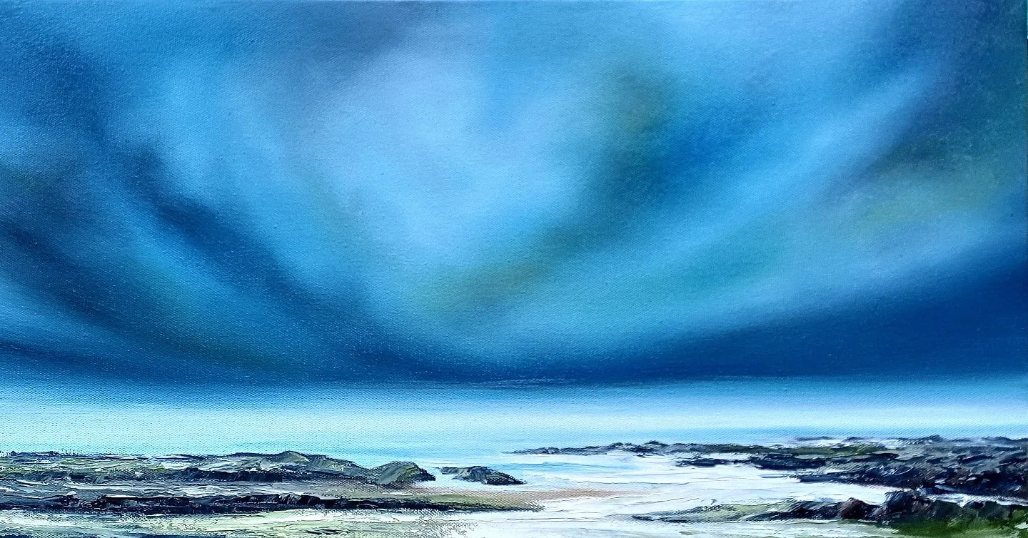 She creates moody landscapes and seascapes which capture the movement of the sea and it's atmospheric reflections.