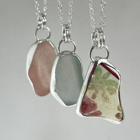 - Various sizes and shaped glass or pottery. between approx. 1-2cm on 18” chain