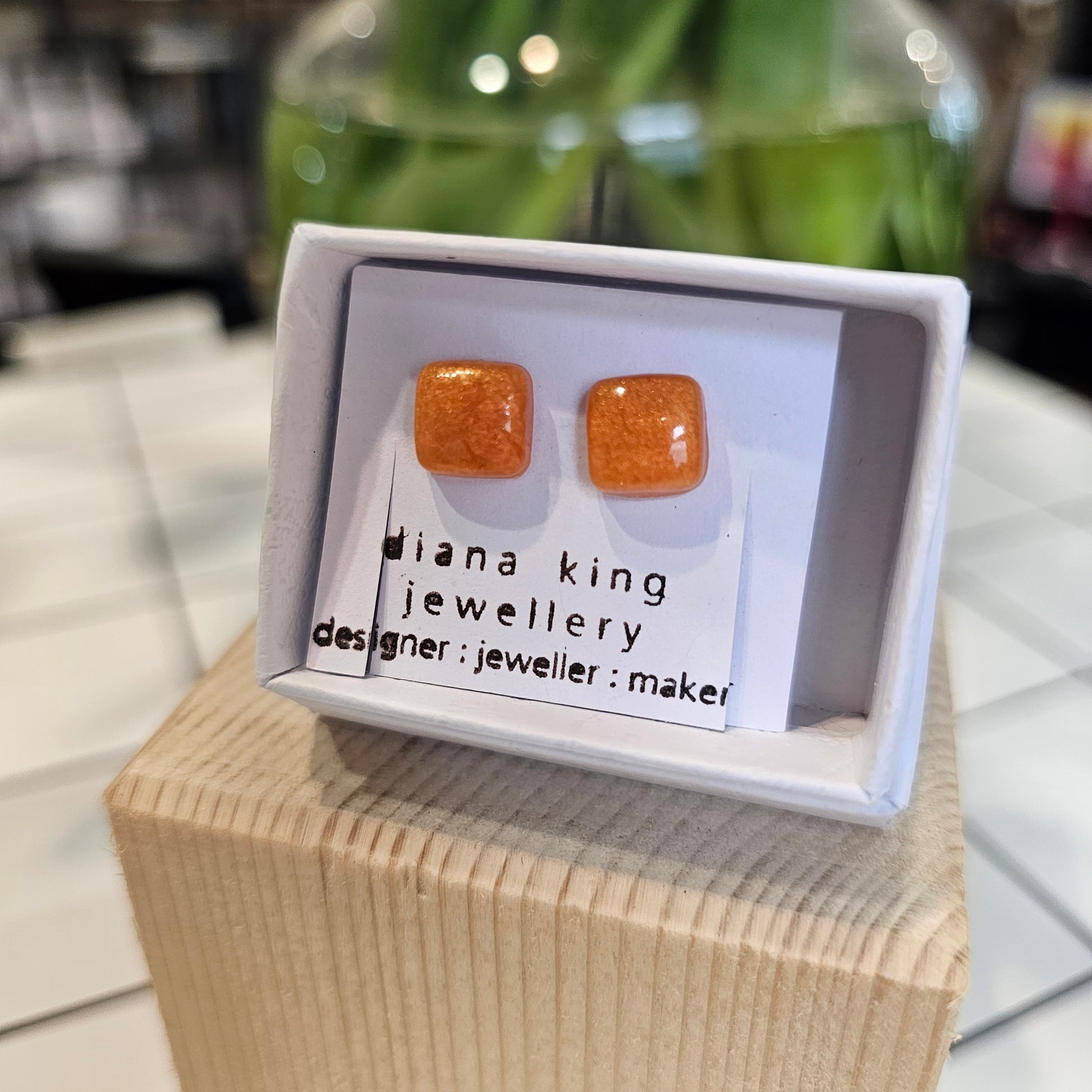 Cast Resin Orange Puff Square Studs