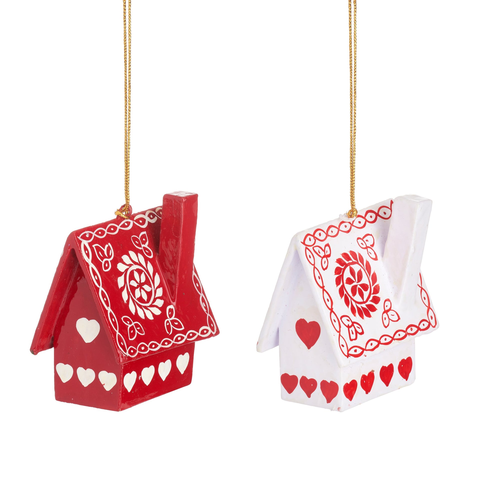 This Kashmiri Wooden House Shaped Decoration will bring on-trend style to your Christmas tree. These Christmas Decorations are accented with heart-warming hues.