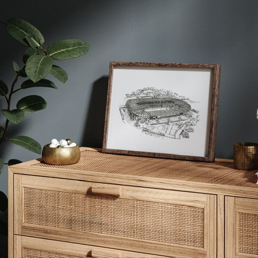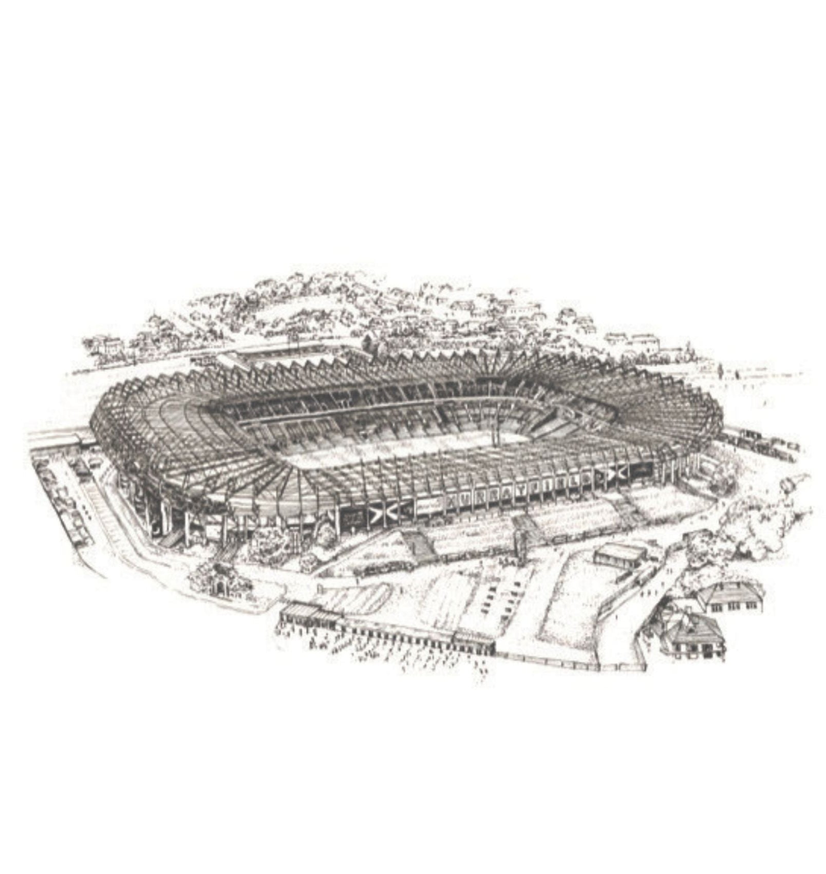 The print is taken from Sanna's fine line drawing of Murrayfield and is filled with the detail of the park and surrounding area.