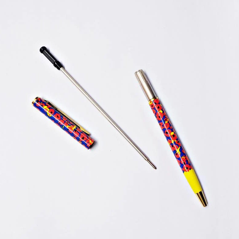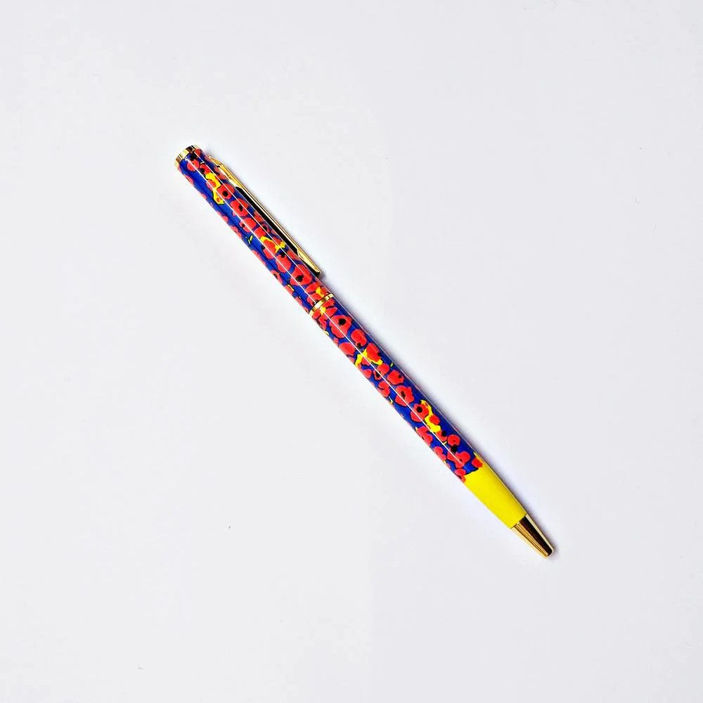 Make writing a little more fabulous with this printed metal pen. It features a graphic abstract print and has gold coloured trim. It has a fine ball point and black ink. And it's refillable! Refills sold separately.