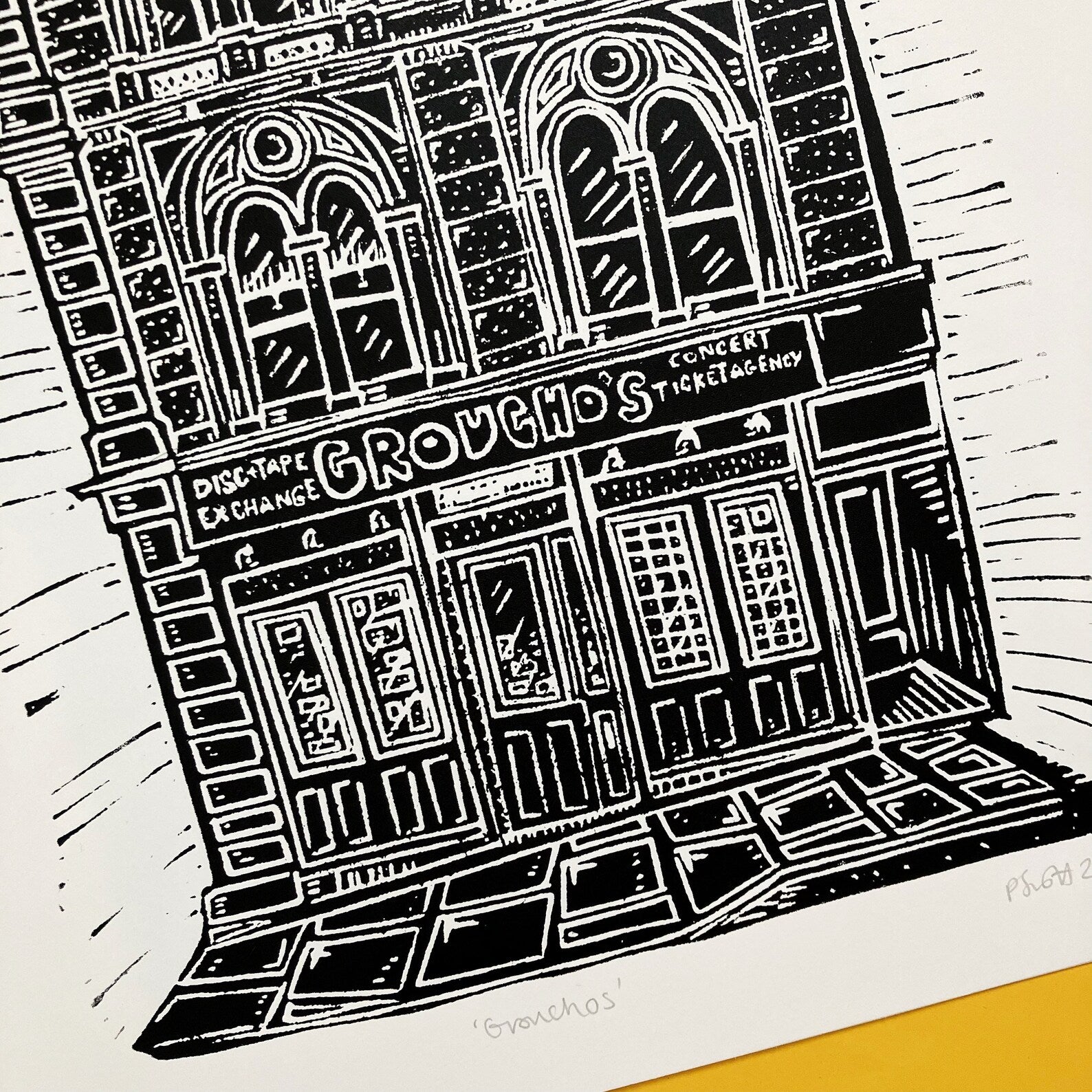 - Screenprinted enlargement of the original linocut print by Pamela Scott.