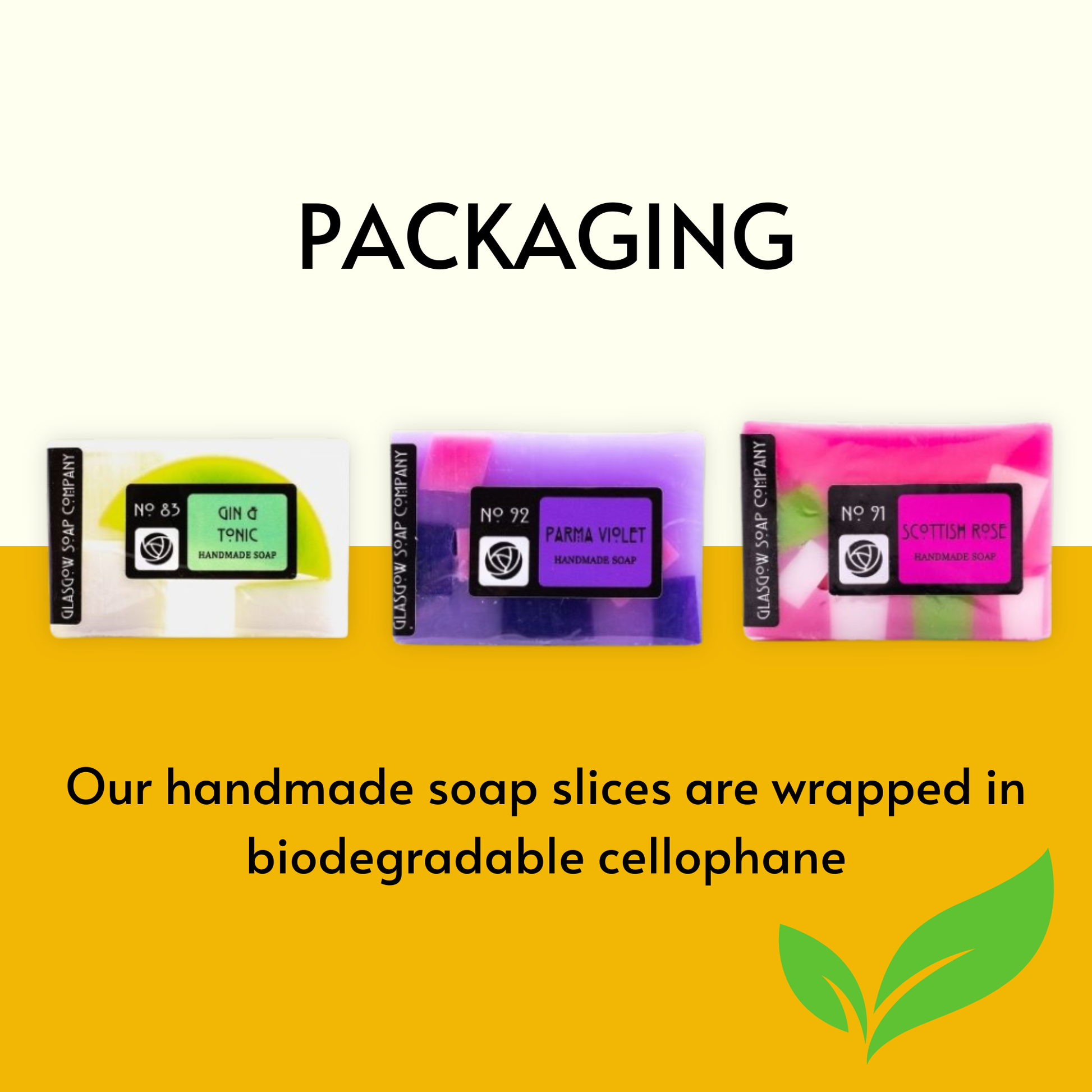 Our handmade soap slices are made from vegetable glycerine which is gentle and moisturising.