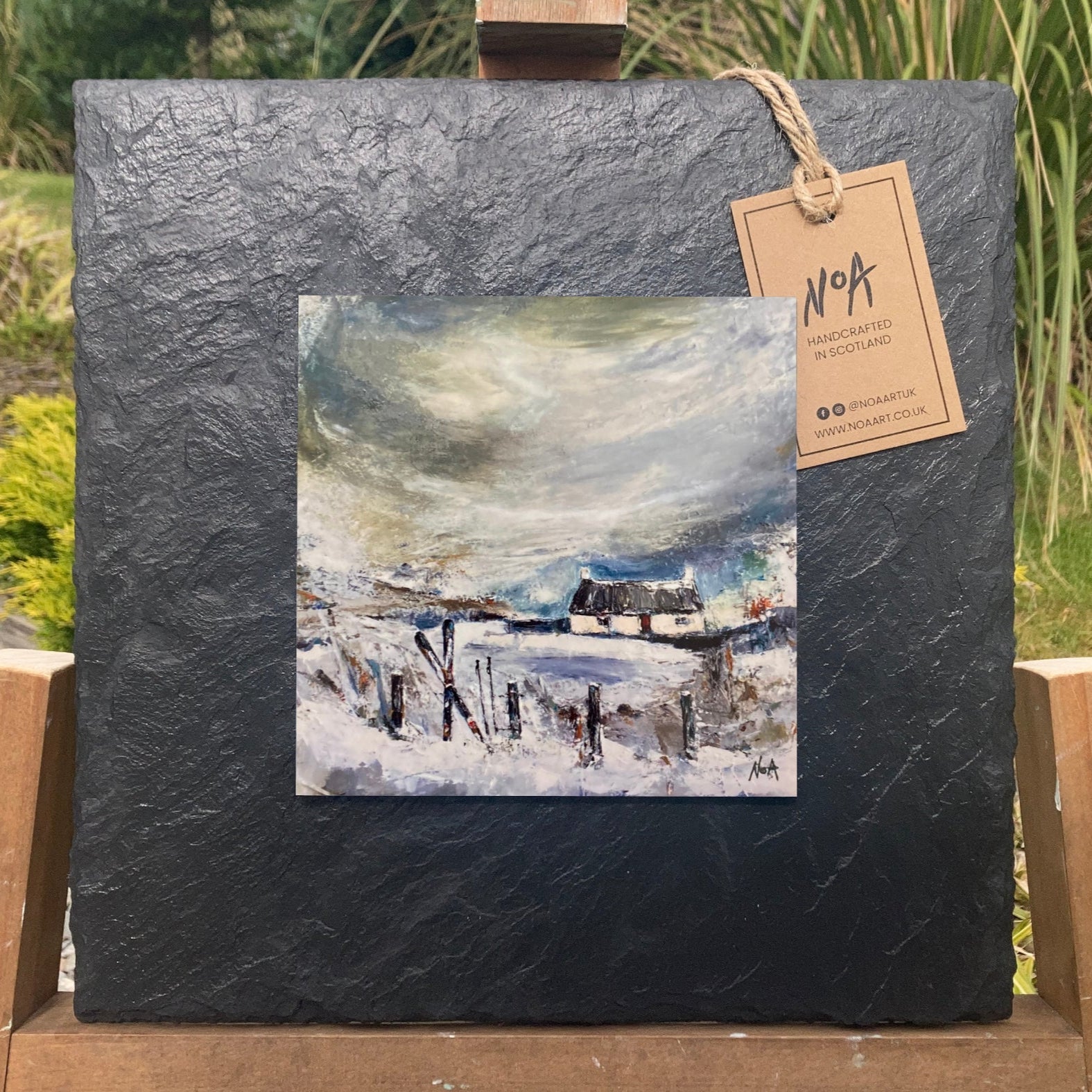 - The tile is mounted in house onto natural slate, which is hand cut, shaped and oil treated in-house to bring out its natural texture. Just like a snowflake, no two slates are the same, so your artwork will always be totally unique.
