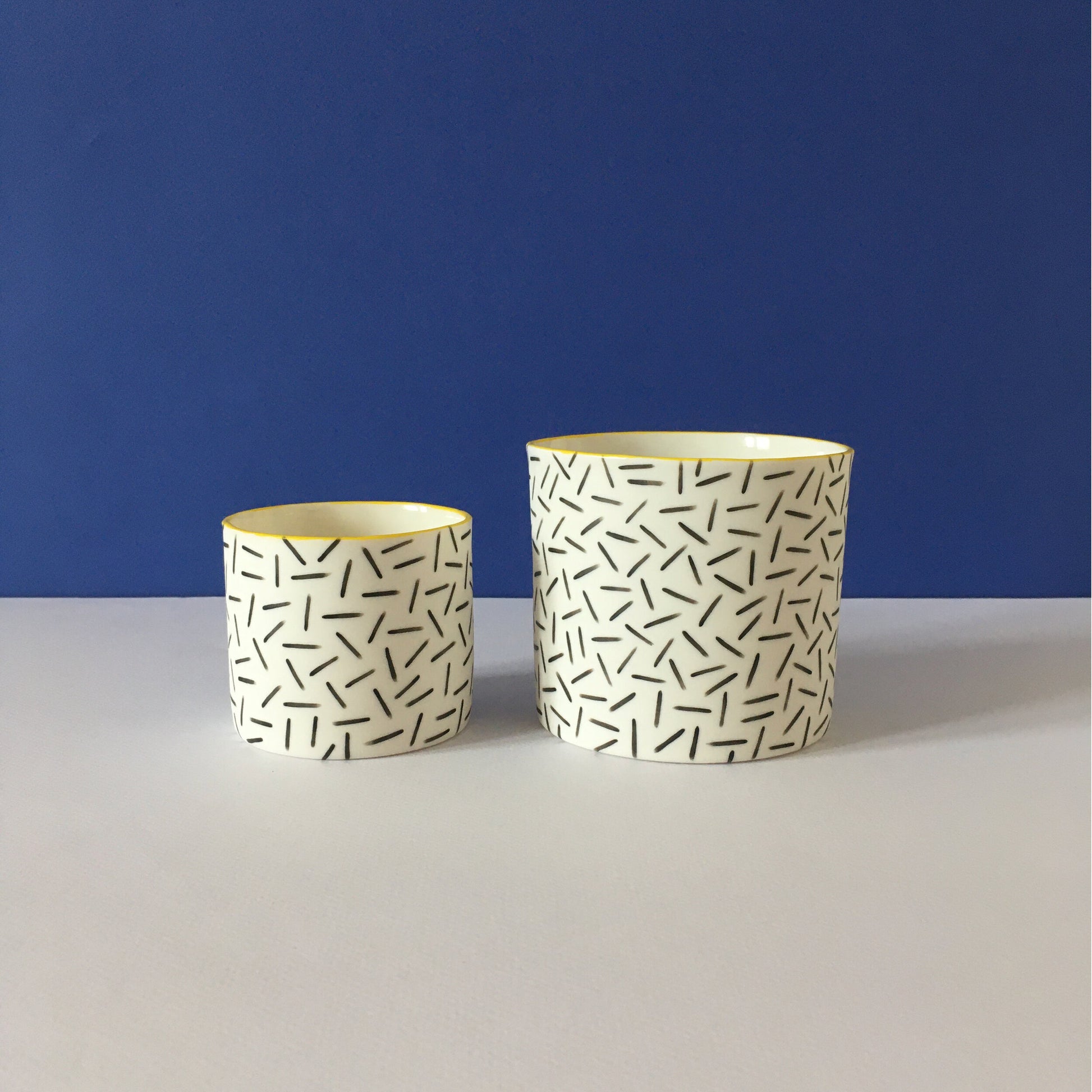 Minimal and understated, with a pop of yellow around the rim, the Dash Pots are stylish modern accessories for your home that stand out without shouting.
