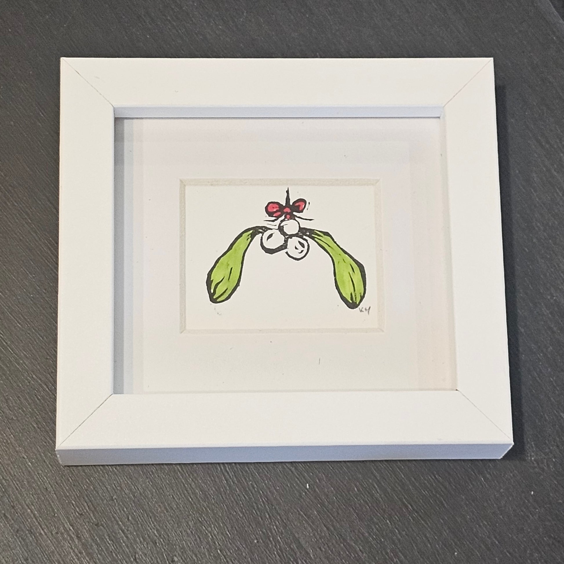 Add a touch of festive charm to your home with this colourful lino print of Mistletoe by BeeBirds.