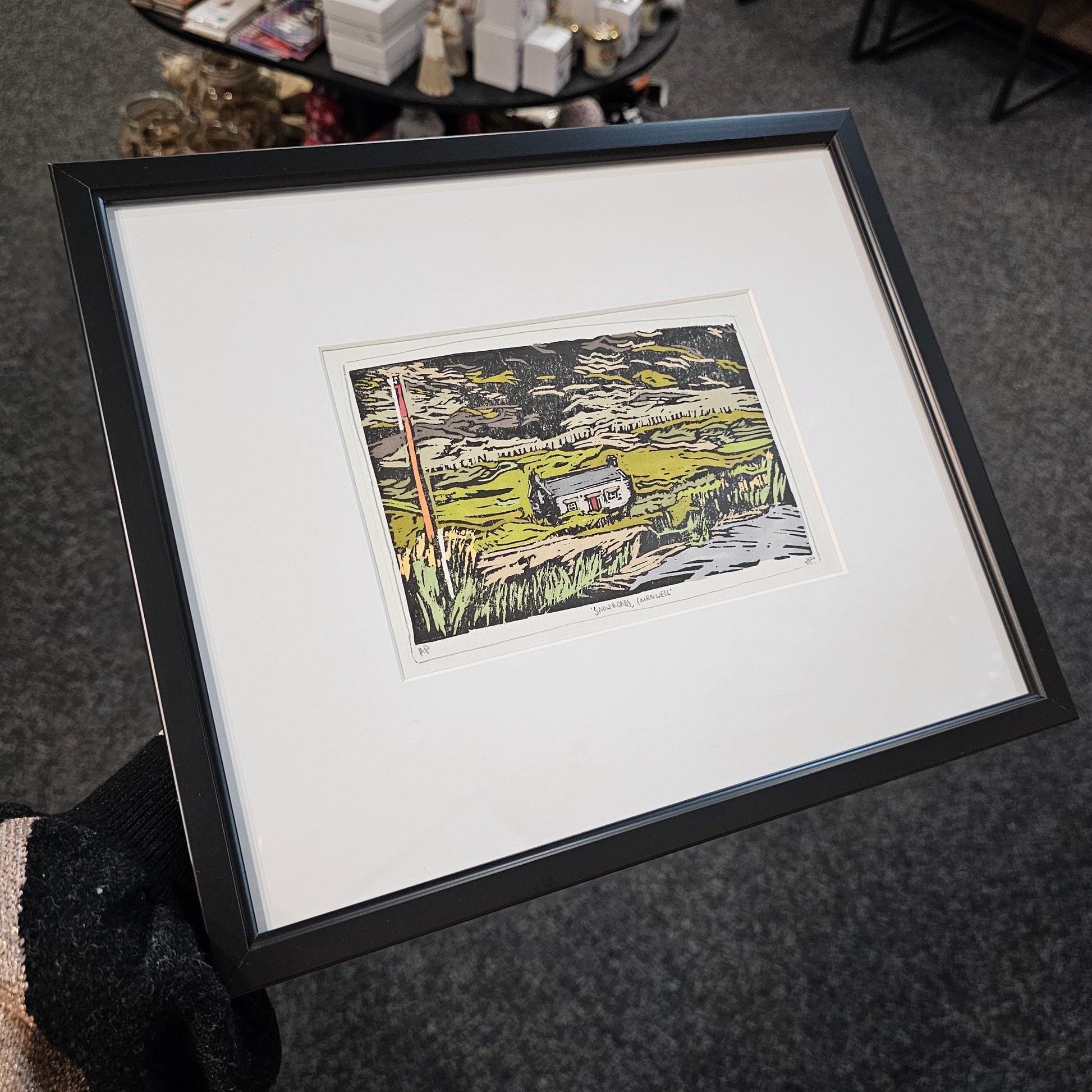 Colourful Lino Print of 'Snowroads, Cairnwell' by BeeBirds