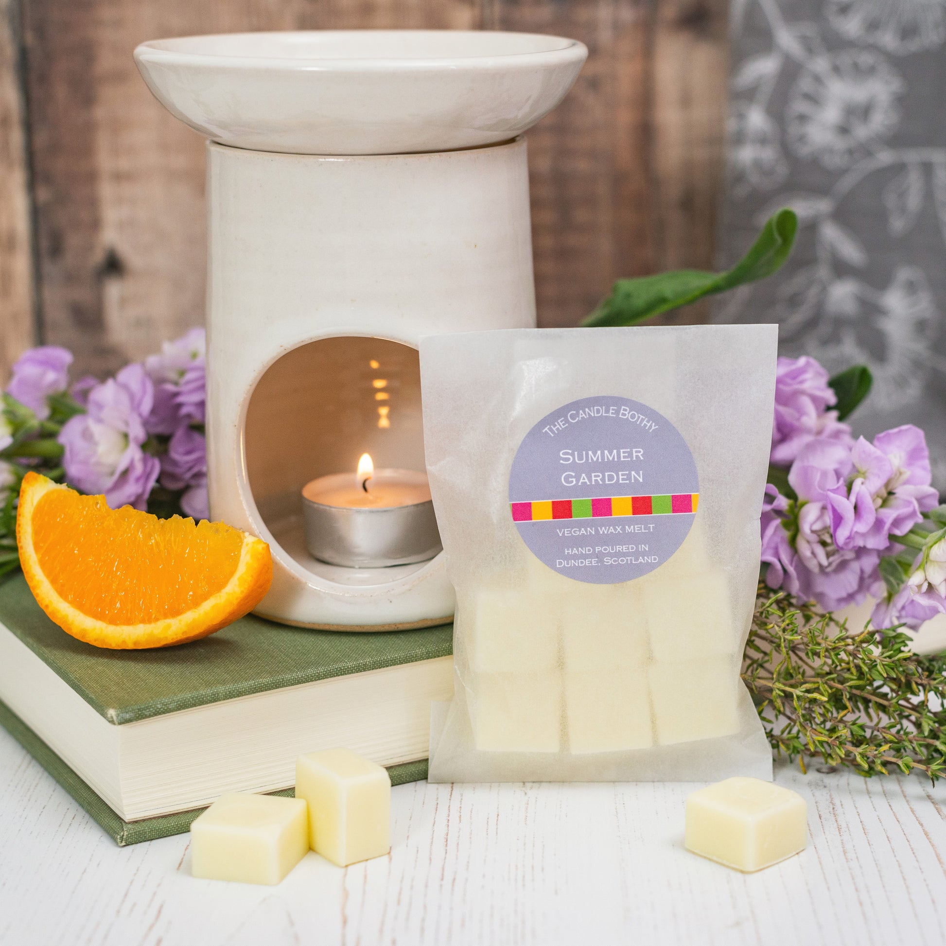 WAX MELTS: Pack of 8 wax melts made using soy wax. They are compatible with both, electric and traditional tealight wax burners.