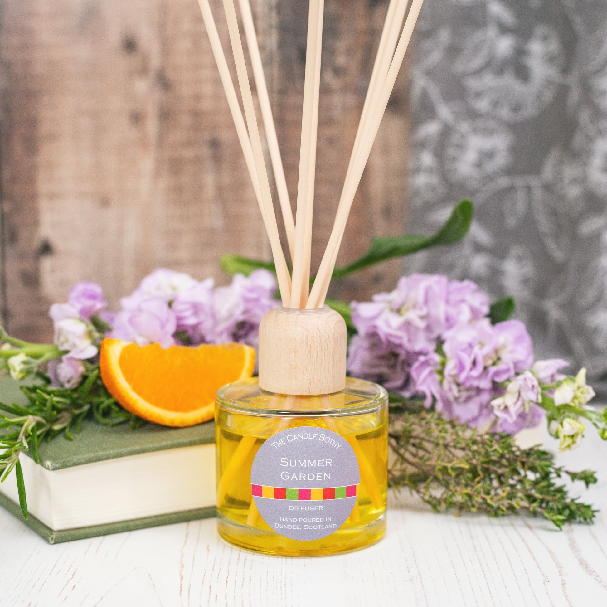 DIFFUSERS: come in clear glass bottles with natural coloured fibre reeds and are packaged in a white box which makes them ideal as a present. All diffusers are hand-poured in small batches in Dundee/Scotland.