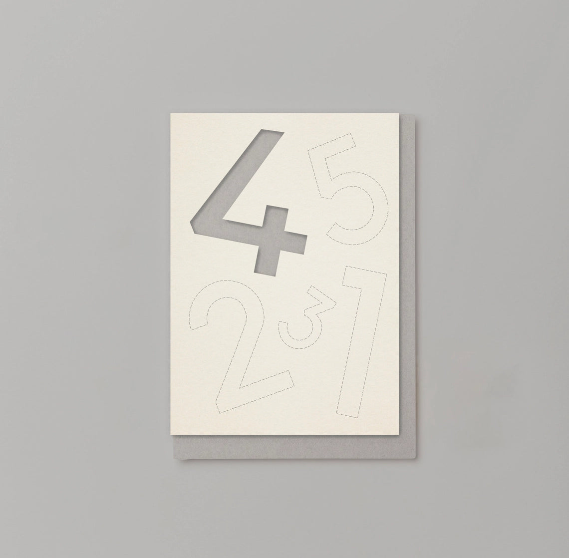 From our Scandi Type range, coloured inside, birthday (or anniversary) card accompanied with a GF Smith envelope. The design has a number cut out of the card to reveal the inner printed colour. Printed in the UK using FSC approved papers.